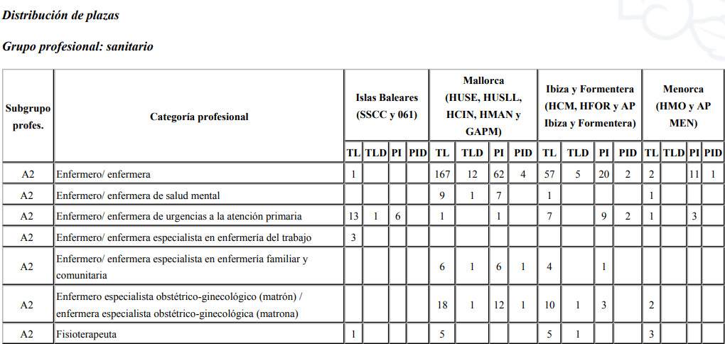 A continuación, dejamos la correlación de plazas convocadas y os recordamos que desde SATSE Baleares estamos a tu disposición para la resolución de dudas. En el momento en el que se inicie el periodo de la presentación de solicitudes, nos volveremos a poner en contacto contigo.
