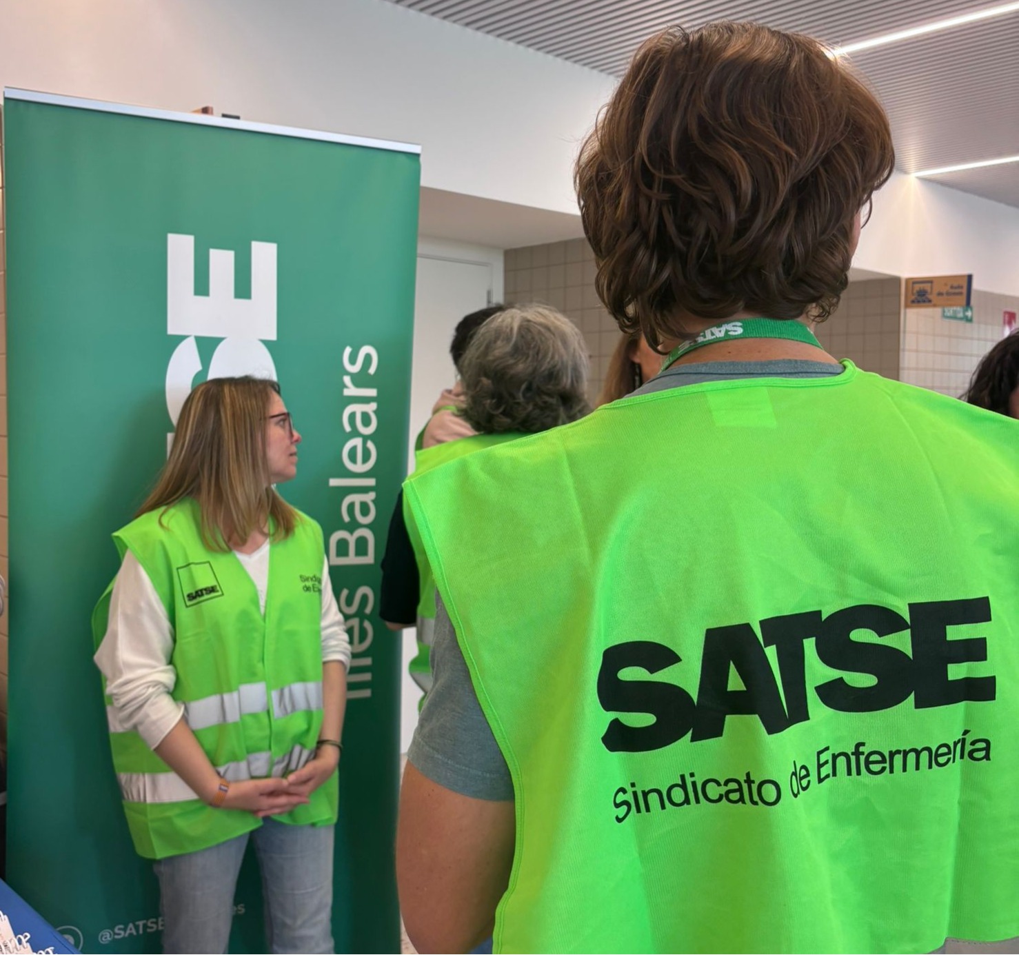 Durante la jornada, las delegadas de SATSE María Tomás, del Hospital Universitario Son Espases; María Antonia Barceló, del Hospital de Manacor; y Lara Ruiz, delegada de SATSE en el Institut Mallorquí d’Afers Socials (IMAS), entre otras delegadas, mantuvieron un contacto directo con los alumnos y alumnas, resolviendo sus dudas y compartiendo información práctica sobre el acceso al empleo, las condiciones laborales y los recursos disponibles para los futuros profesionales sanitarios.